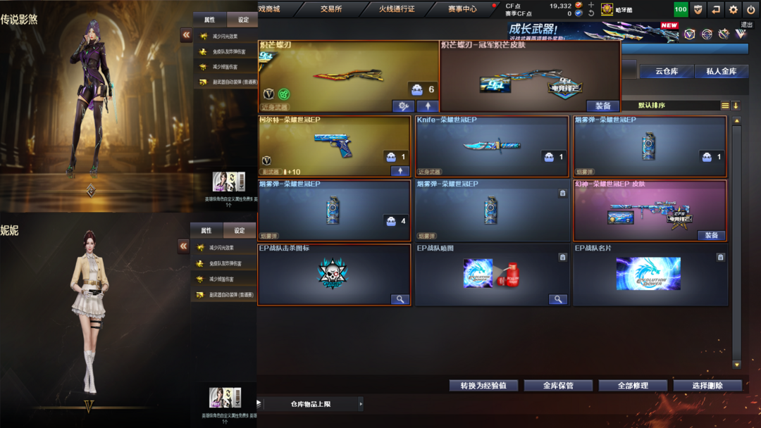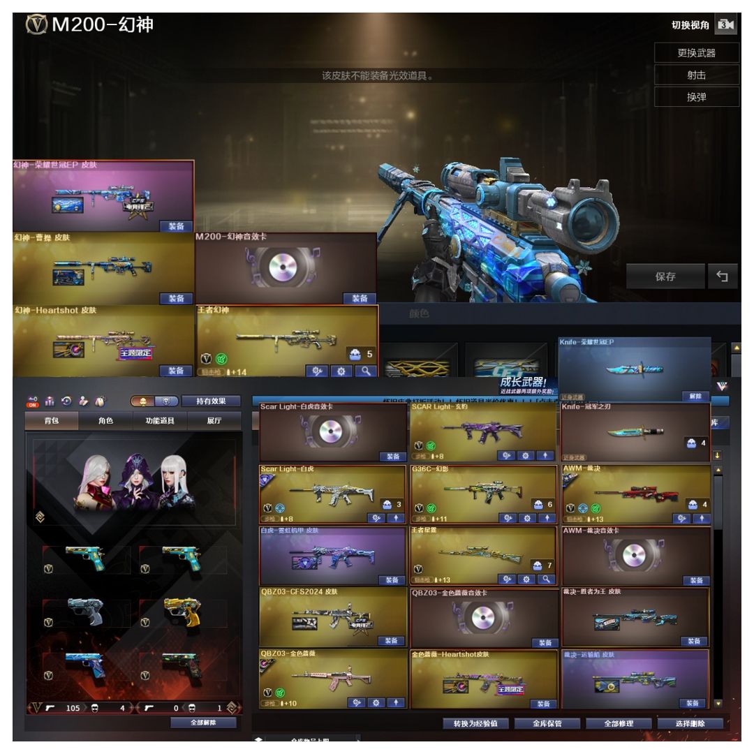 EP全套小刀+妮妮❤幻神白虎QBZ裁决音效卡+皮❤满配副手USPCOP柯尔特❤传说影煞❤幻影炽芒蝶刃