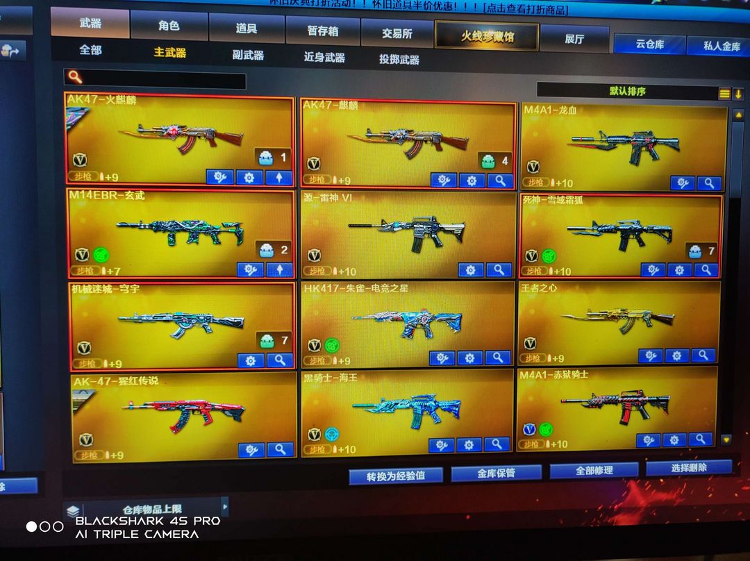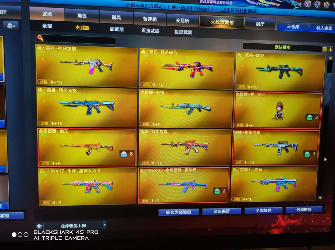【英雄:26 王者:1】火麒麟带皮毁灭带皮,玄武,加特林,全弹夹,qbz金色蔷薇街机。