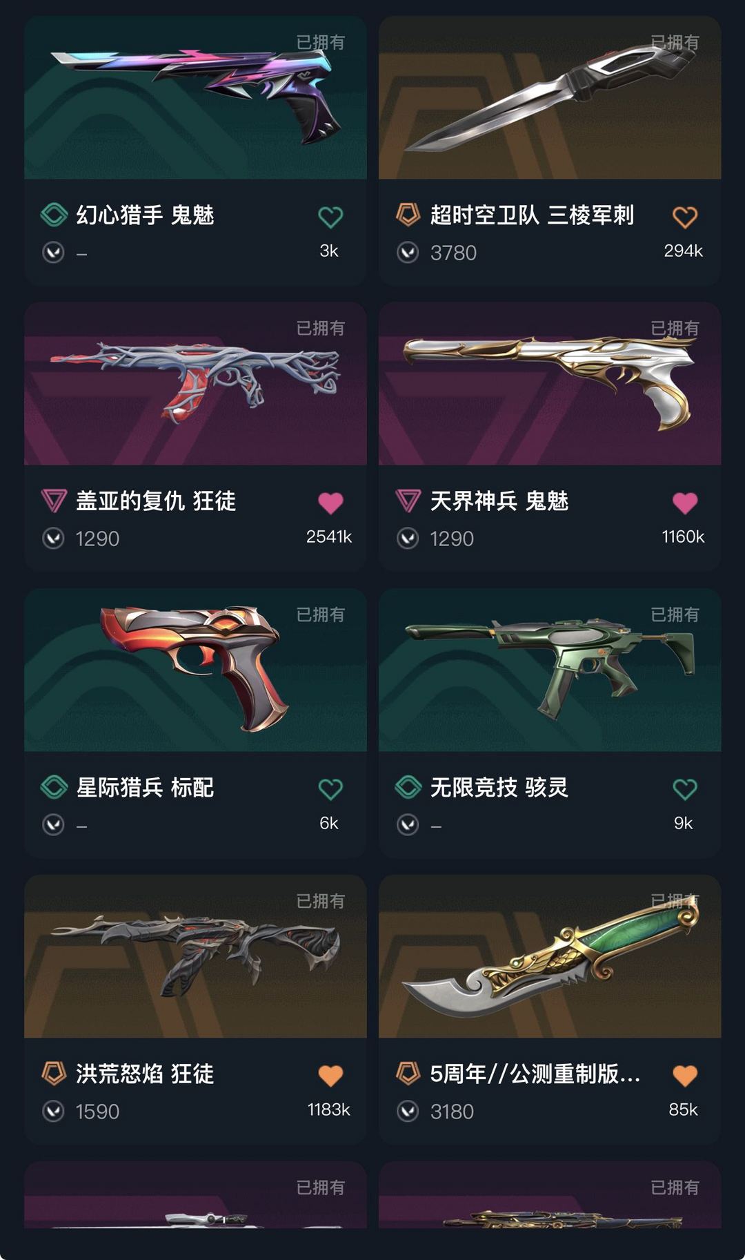 禁排超时空军刺VCT爪刀关公刀盖亚流脓狮子狂徒侦察幻影奇点正义天界鬼魅离子冥狙