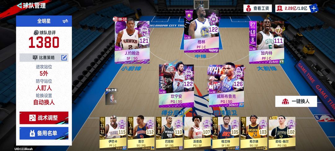装备描述:满突威少爷+回忆格林带队,街头王朝爽玩!
