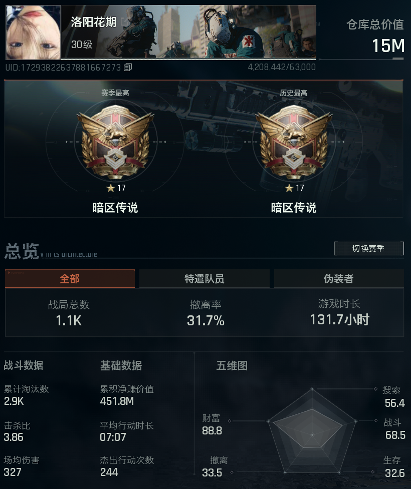 ☀陨锋裂爪☀⭐纯币1350W⭐战斗分7805⭐3*3安全箱⭐15M⚡电视台农场钥匙⚡