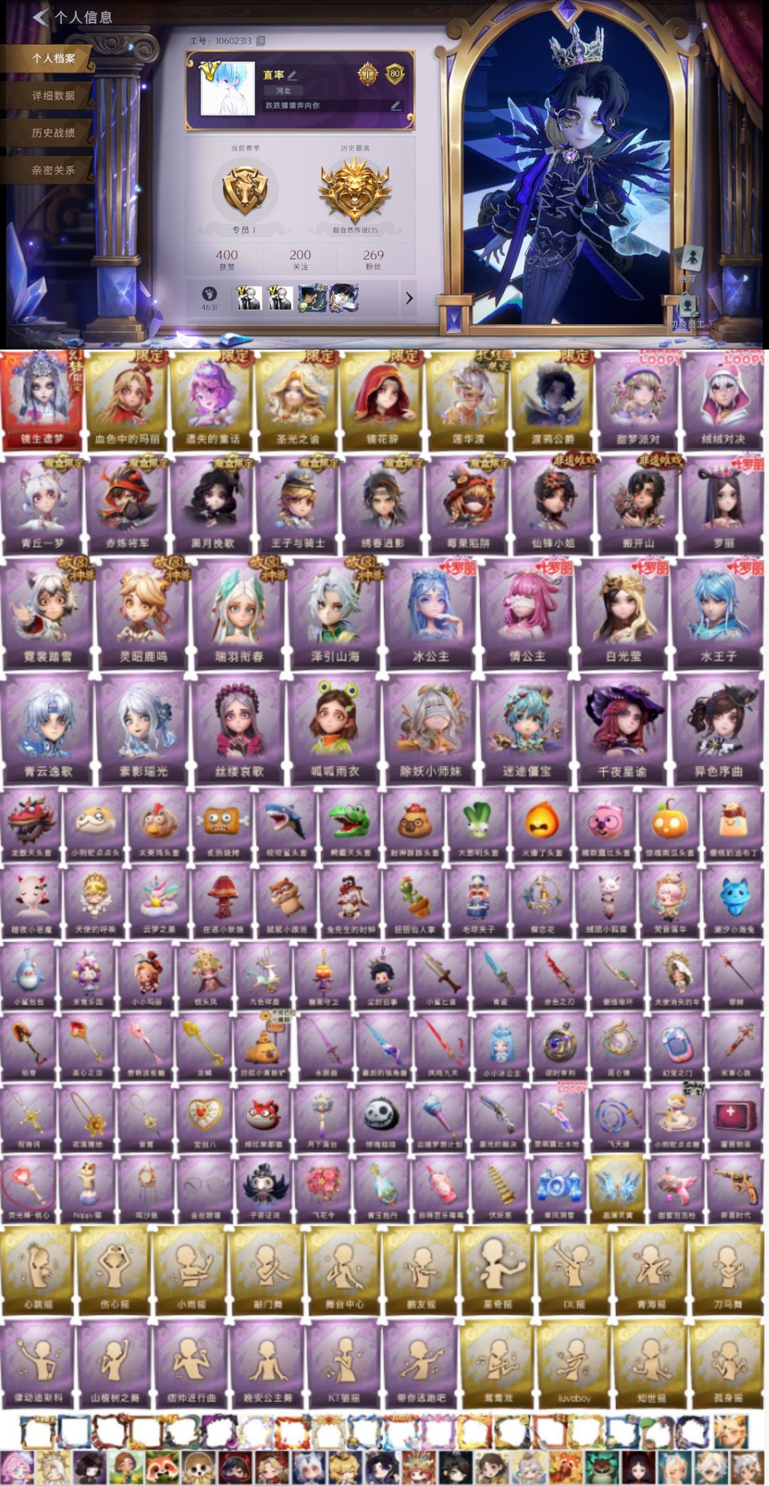 极品ID【直率】渡鸦公爵✨1幻梦6金27紫✨兔宝✨全图鉴满内测全魔盒✨千夜星谕✨非遗傩戏✨原始框龙头