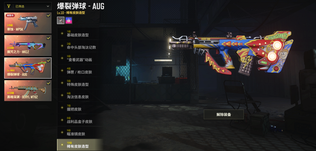 兰博基尼✅⑩级爆裂AUG✅④麒麟M762✅(异色)寒蚀MP5K✅魔咒MK12✅✅黑鬼多载具