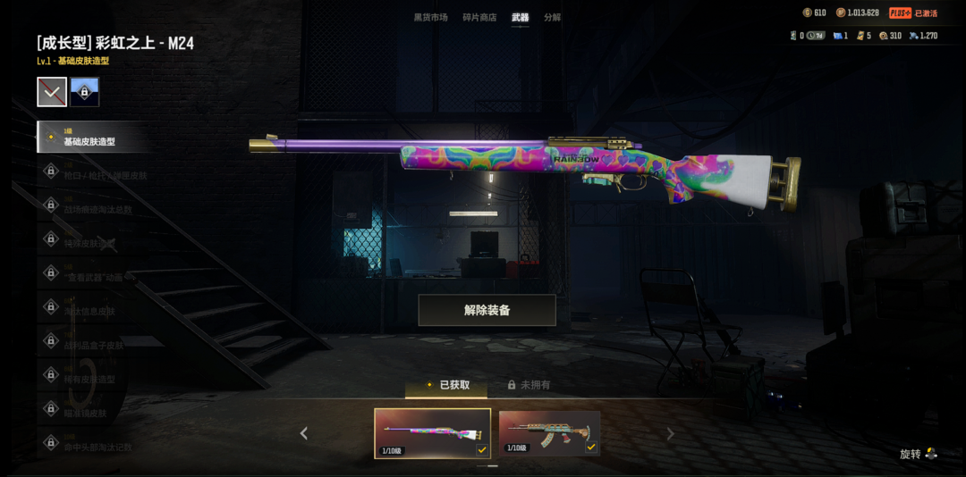 装备描述:布加迪双拼渐变蓝绿+炫酷紫跑车兰博基尼URUS无信号M4彩虹M24弹珠AUG杜卡迪黑武士金面发光手