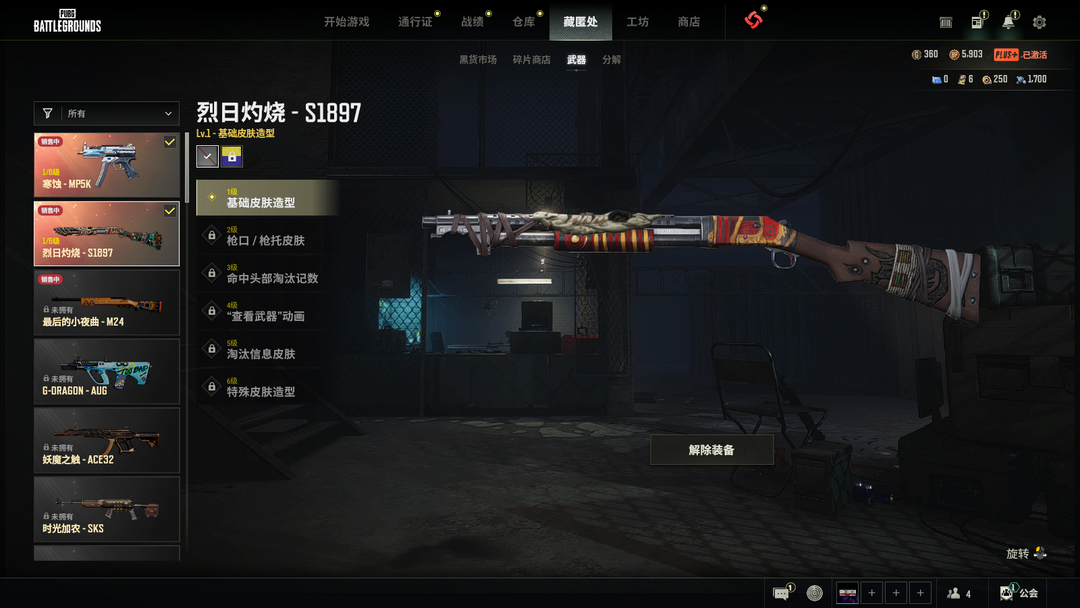 可排位✅成长型寒蚀MP5K列日灼烧S1897白战神白运动卡崔娜✅黄金面具坏兔子套✅云南打歌舞✅迈凯伦